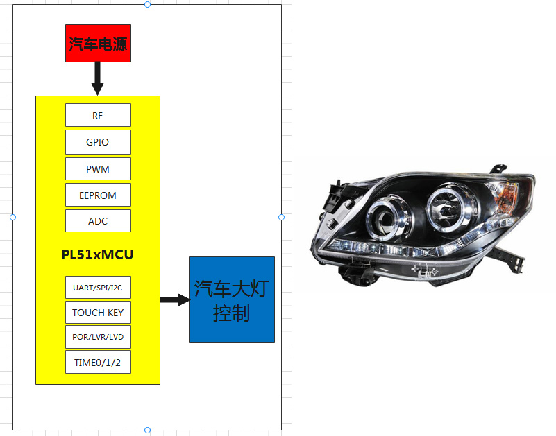随着生活条件提高,日常出行汽车成为不可或缺的交通工具,目前的路面上,从豪华车到热销车,以及国产车,使用耐高温、低功耗PL51T020设计的各种类型汽车大灯及尾灯控制方案,满足汽车灯的各类应用。